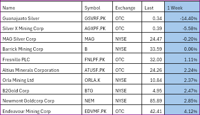 A scan of 64 gold and silver miners this morning shows me the weakest 1-week and 1-month performers on US markets trading.