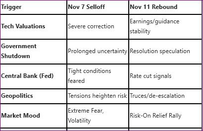 If you blinked between last Friday (November 7) and today, Monday (November 10), you might have missed one of the most dramatic sentiment reversals in recent memory1. In just one trading weekend, the U.S. stock market pivoted from a state of deep pessimism to a powerful relief rally, offering a masterclass in how quickly narratives can shift2.