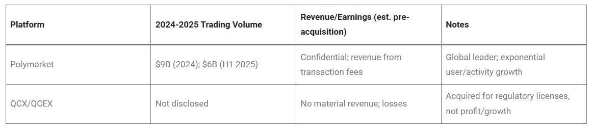 Financial Performance: QCX, QCEX, Polymarket (Pre-Acquisition)